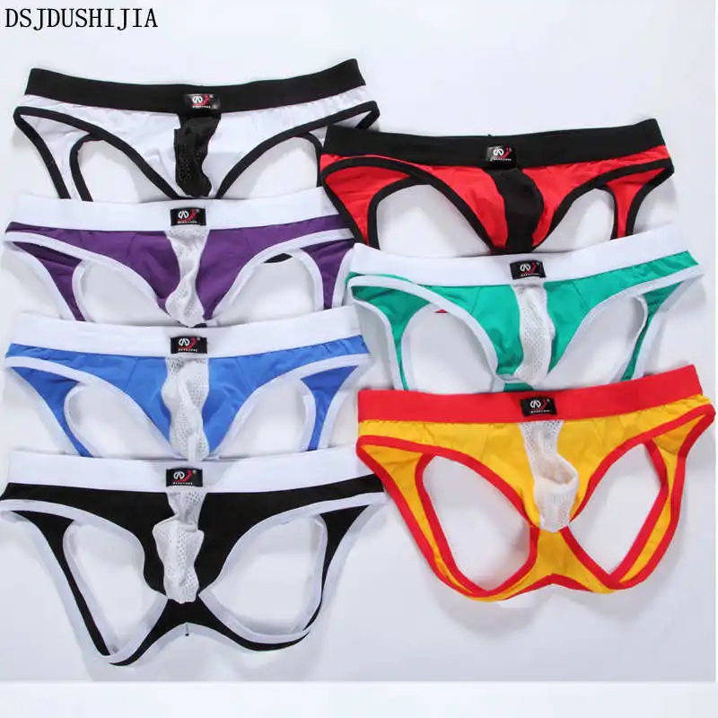 7Pcs Sexy Underpants Briefs Fetish Backless U Bulge Penis Pouch Underwear Mesh Cotton Panties Males Patchwork Triangle Briefs