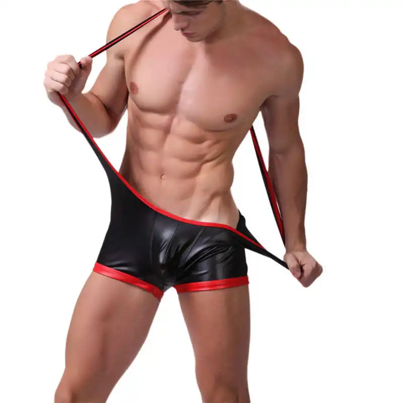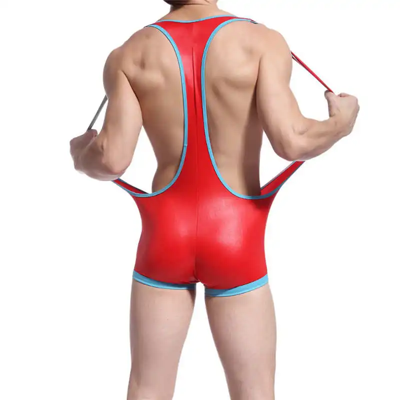 Limited Offer Mens Sexy Leotard Underwear Sleeveless Gay Stretch Tight Wrestling Singlet Faux Leather Shiny Briefs One Piece Jumpsuit Bodysuit